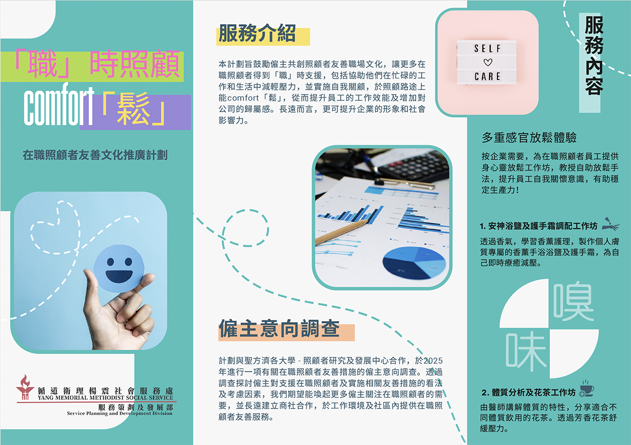 透過「照顧者支援平台」,為照顧者提供一站式了解本處轄下(長者、殘疾人士、家庭、兒童及青少 年服務)的照顧者支援服務、服務資源,以及各類協作網路優惠。